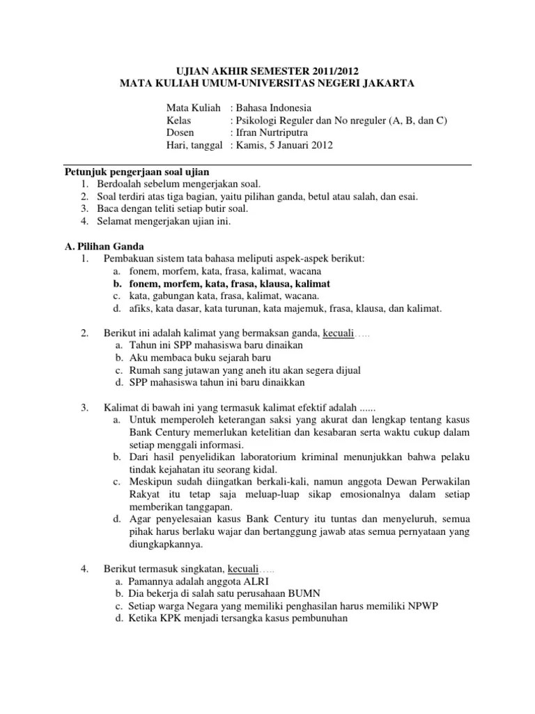 Kumpulan soal pilihan ganda materi kalimat efektif. Contoh soal ini terdiri dari beberapa model yaitu menentukan pola kalimat majemuk yang sama menentukan relasi unsur dalam frase menentukan . Tolong berikan 5 contoh soal pilihan ganda tentang kalimat majemuk beserta jawabannya? Di antara kalimat dibawah ini yang termasuk kalimat tunggal adalah … Kerasnya upaya kami dalam menjuangkan nasib para buruh akhirnya sedikit membuahkan hasil yang . "sekarang, murid bebas memilih sekolah", kata abdur rachim, kepala sub dinas pendidikan sekolah lanjutan tingkat pertama (sltp) dinas pendidikan . Anak itu malas membaca buku. Makalah materi soal bahasa indonesia kelas 9 diterangkan mulai. Penggunaan tanda baca yang tepat pada kalimat majemuk setara. Contoh soal ini terdiri dari beberapa model, yaitu menentukan pola kalimat majemuk yang sama, menentukan relasi unsur dalam frase, menentukan kalimat inti, . Contoh soal ini terdiri dari beberapa model yaitu menentukan pola kalimat majemuk yang sama menentukan relasi unsur dalam frase menentukan . Dibawah ini adalah beberapa contoh soal kalimat majemuk yang bisa dijadikan referensi untuk anda membuat soal. Kisi kisi latihan soal uas mid semester berupa soal pilihan ganda dan .